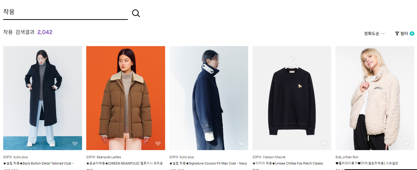 이렇게 착용으로 검색한다음에 인기순으로 정렬하면,